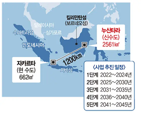 인도네시아 정부는 자카르타의 심각한 과밀화, 교통 체증, 환경 오염, 그리고 침수 문제를 해결하기 위해 보르네오섬 동칼리만탄(Kalimantan Timur) 지역에 새로운 수도를 건설하는 대규모 프로젝트를 추진하고 있습니다. '누산타라(Nusantara)'라 명명된 이 신도시는 2045년까지 약 150만 명의 인구를 수용하는 첨단 행정도시로 조성될 예정입니다.